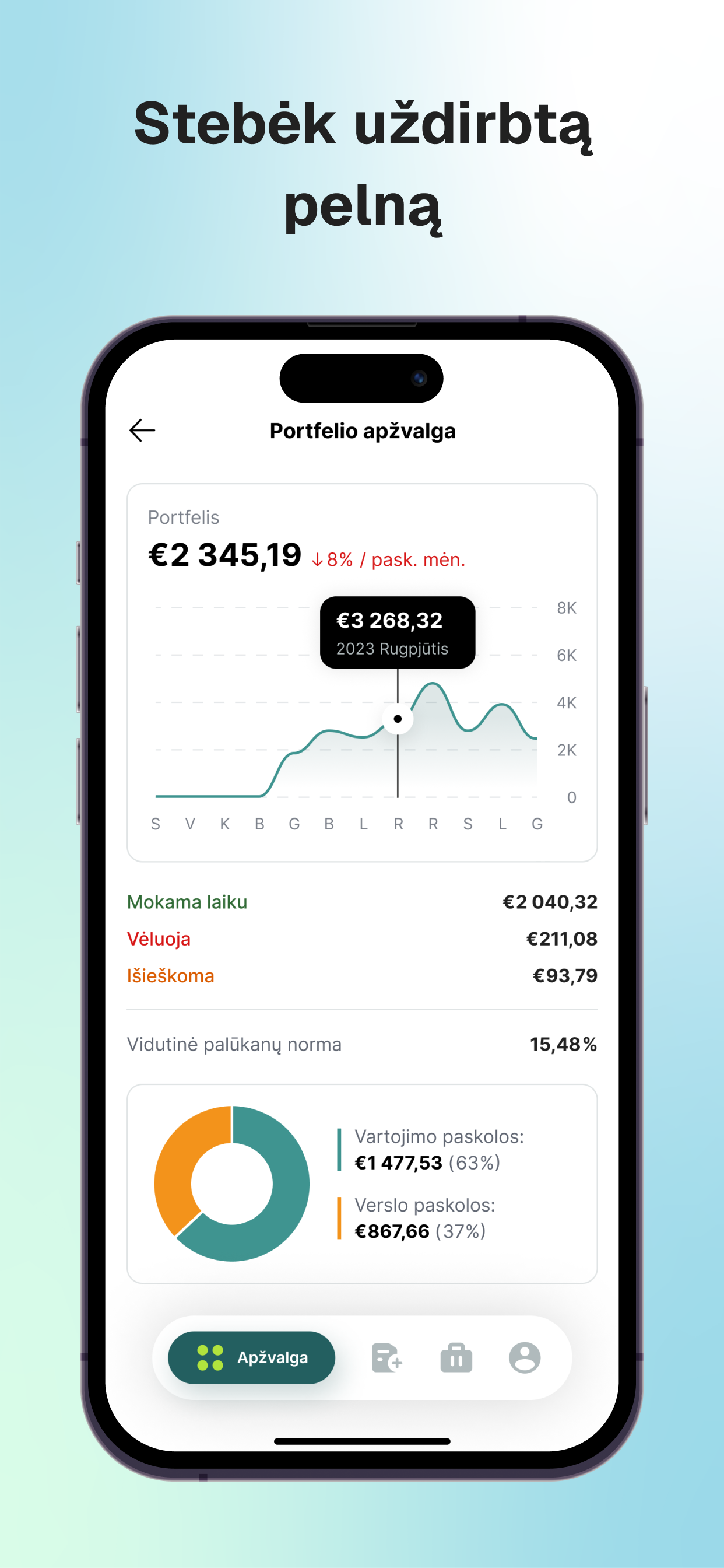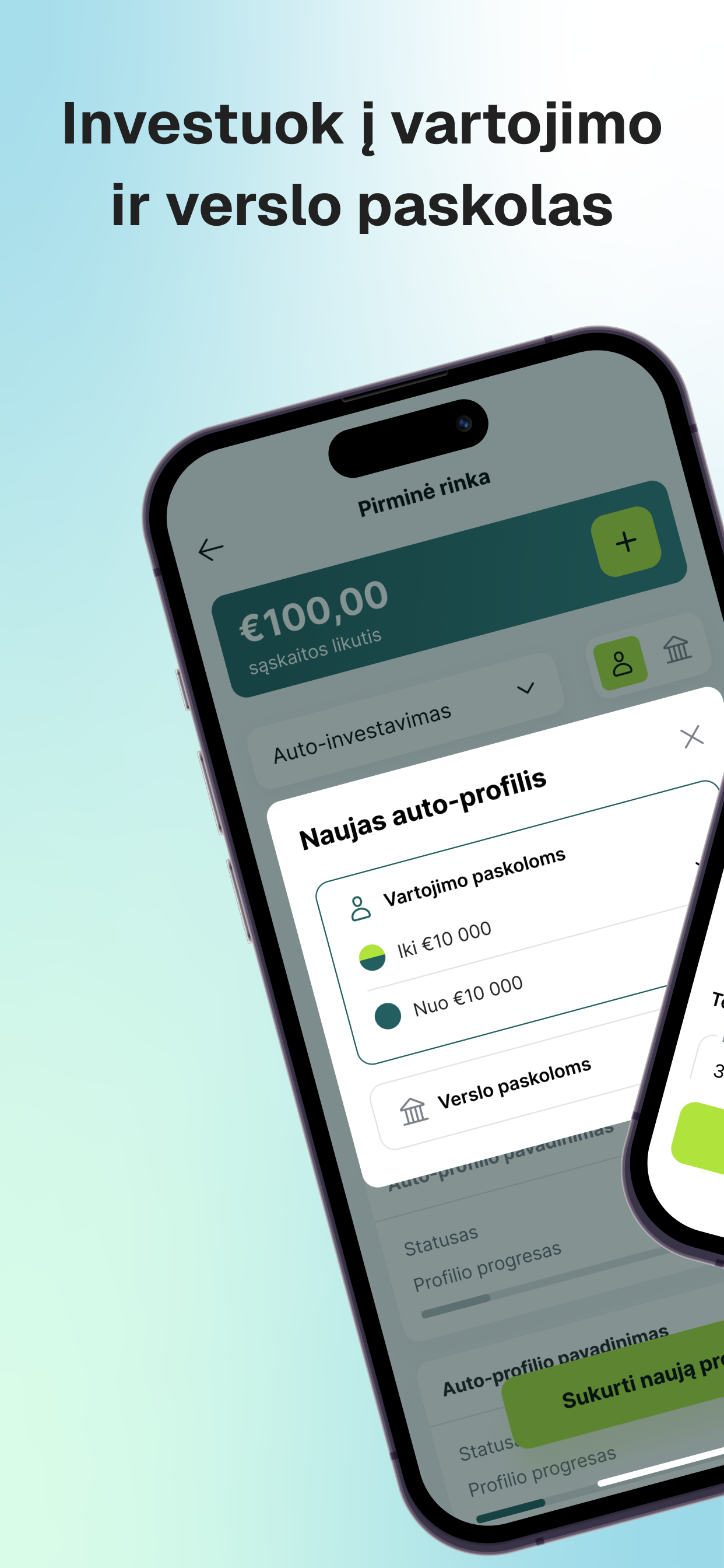 - Valdykite investicijų portfelį. Būkite aktyvūs, atnaujinkite auto-investavimo profilius, pirkite ir parduokite antrinėje rinkoje.