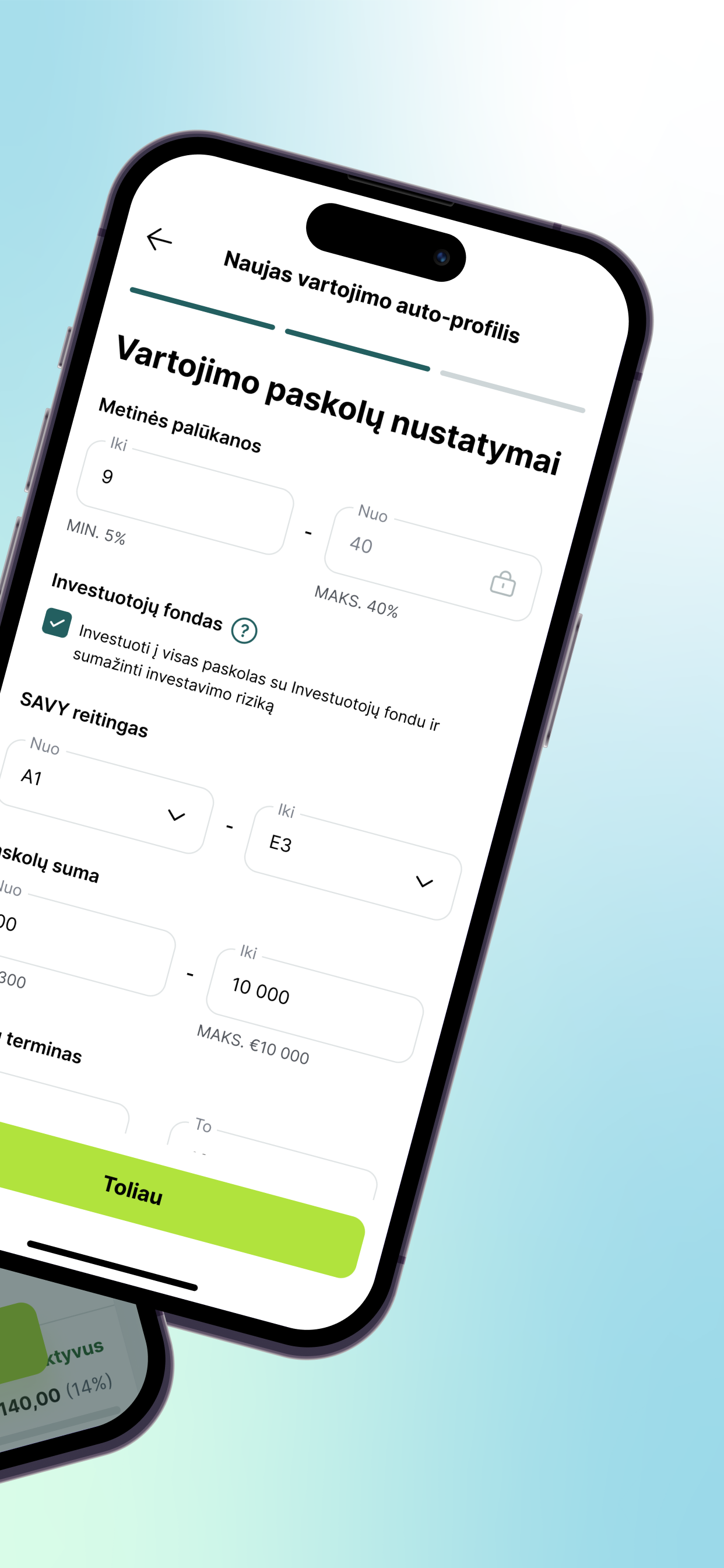 SAVY programėlė skirta investuotojams ir vartojimo paskolų klientams.